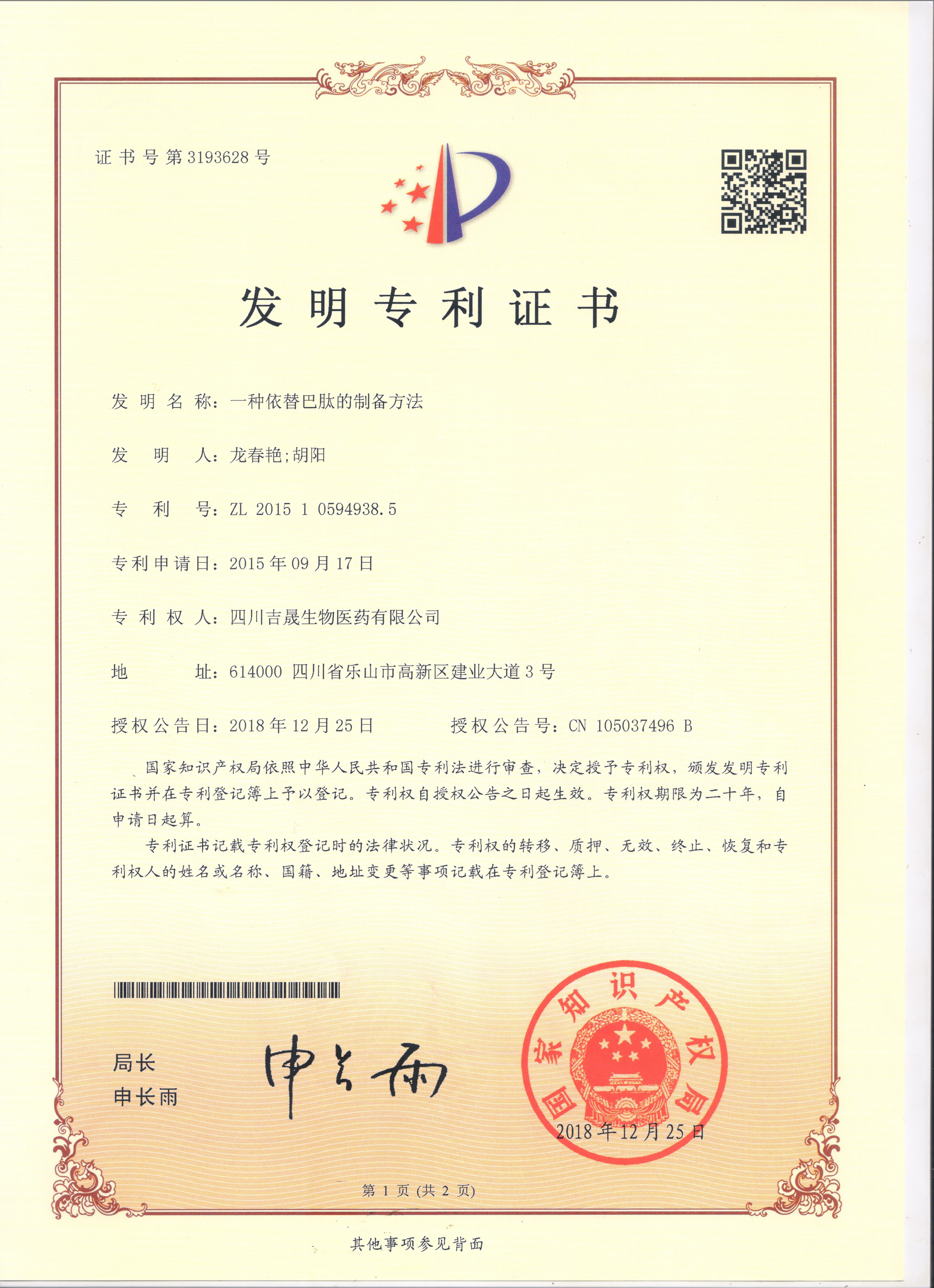 生物發酵專利                                                                   依替巴肽專利                                                   鮭魚降鈣素專利
